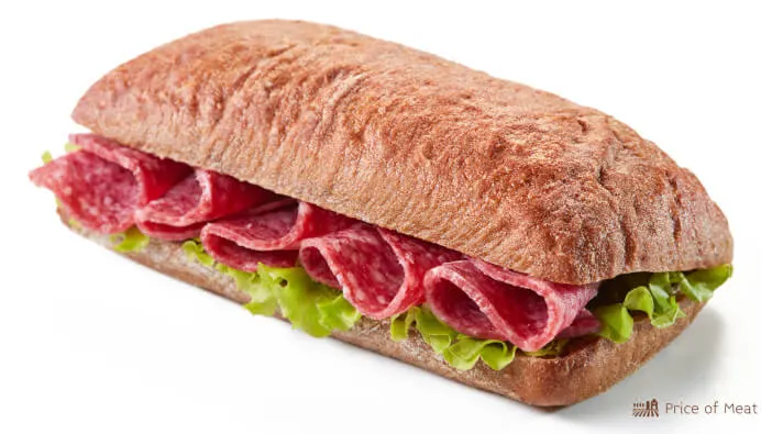 Salami is a different cut of deli meat you need to try because it’s super tasty and makes any sandwich just a bit better. Just like pepperoni, salami is a hard meat that is very fatty but also flavorful.